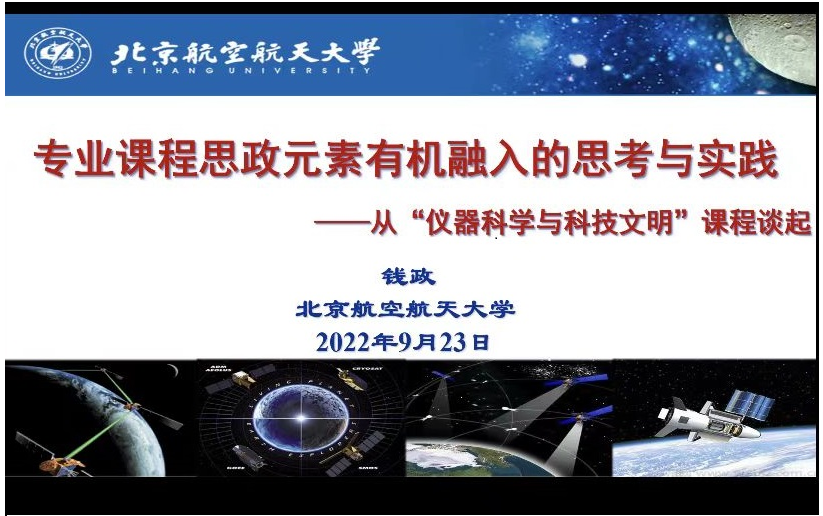 9月23日,beats365亚洲体育投注举办课程思政专题报告会,特邀北航学院院长钱政以《专业课程思政元素有机融入的思考与实践》为主题为学院全体教职工及办学项目授课教师作课程思政专题报告。