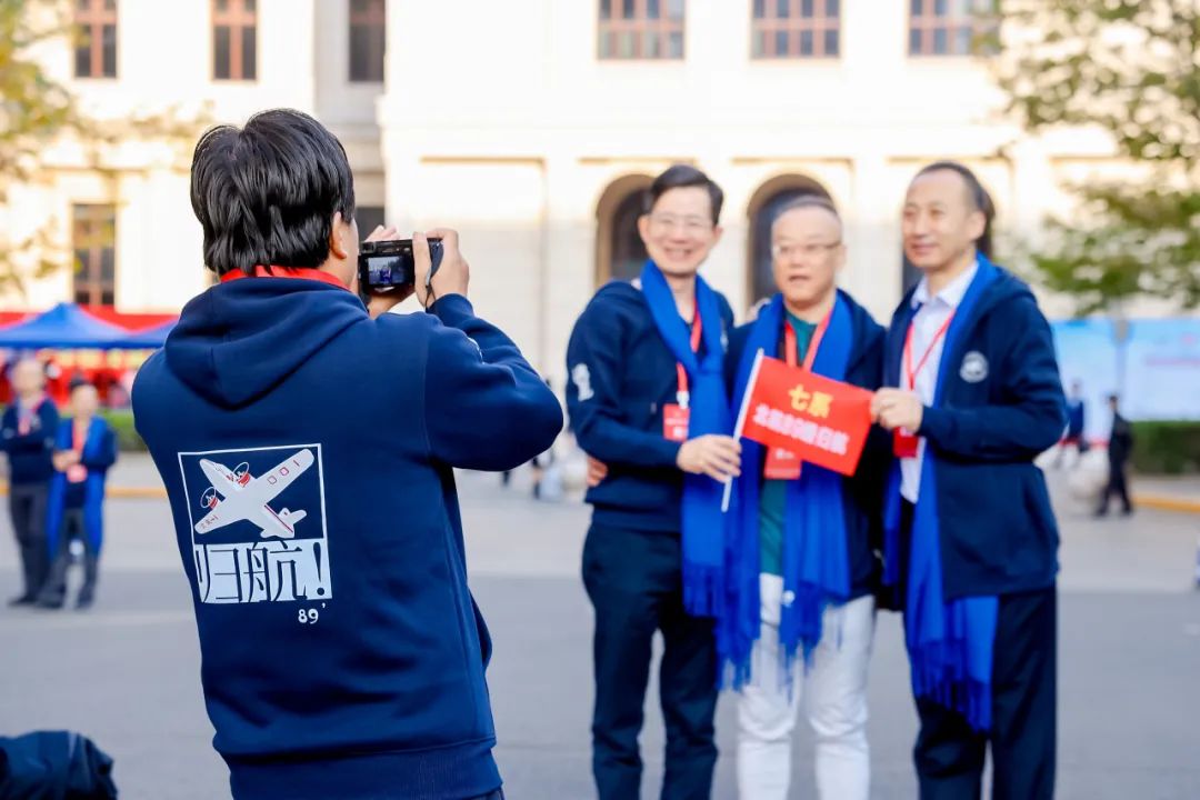 校友返校大会后,校友们纷纷在校园里合影留念。