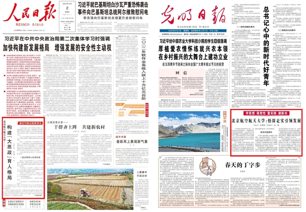《人民日报》头版介绍北航构建“大思政”育人格局 《光明日报》头版报道北航主题教育开展情况