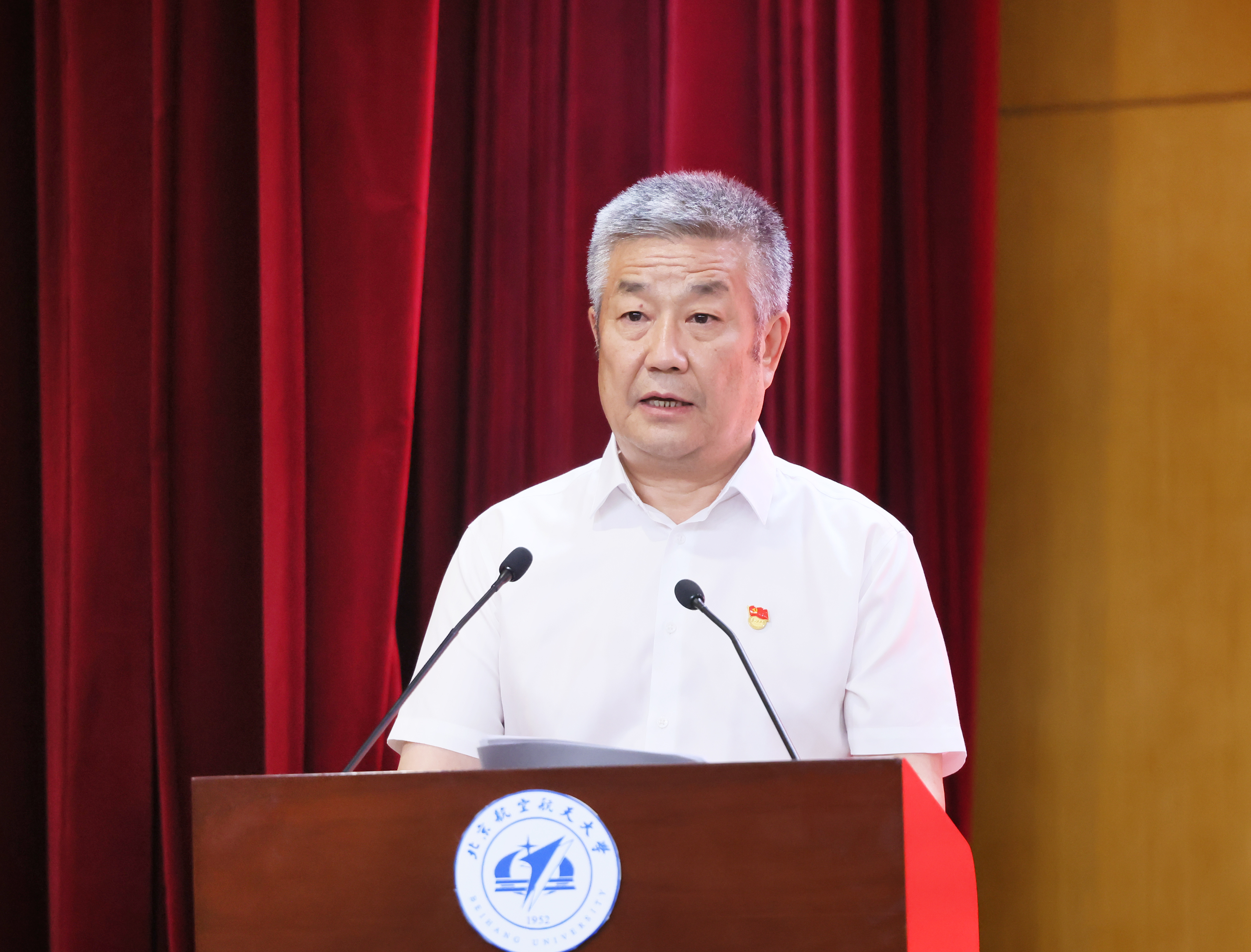赵长禄在讲话中代表学校党委,向全校共产党员致以节日的问候,向光荣在党50年的老同志致以崇高的敬意,向获批示范创建的标杆样板单位表示热烈祝贺,向为学校事业发展倾注心血、作出贡献的各级党组织、广大党员、师生员工以及各位老同志表示诚挚的感谢。他指出,一直以来,北航坚持听党话、跟党走,为党育人、为国育才,传承红色基因,弘扬以“空天报国”为内核的北航精神,走出了一条爱党报国、挺膺担当的一流大学建设之路。