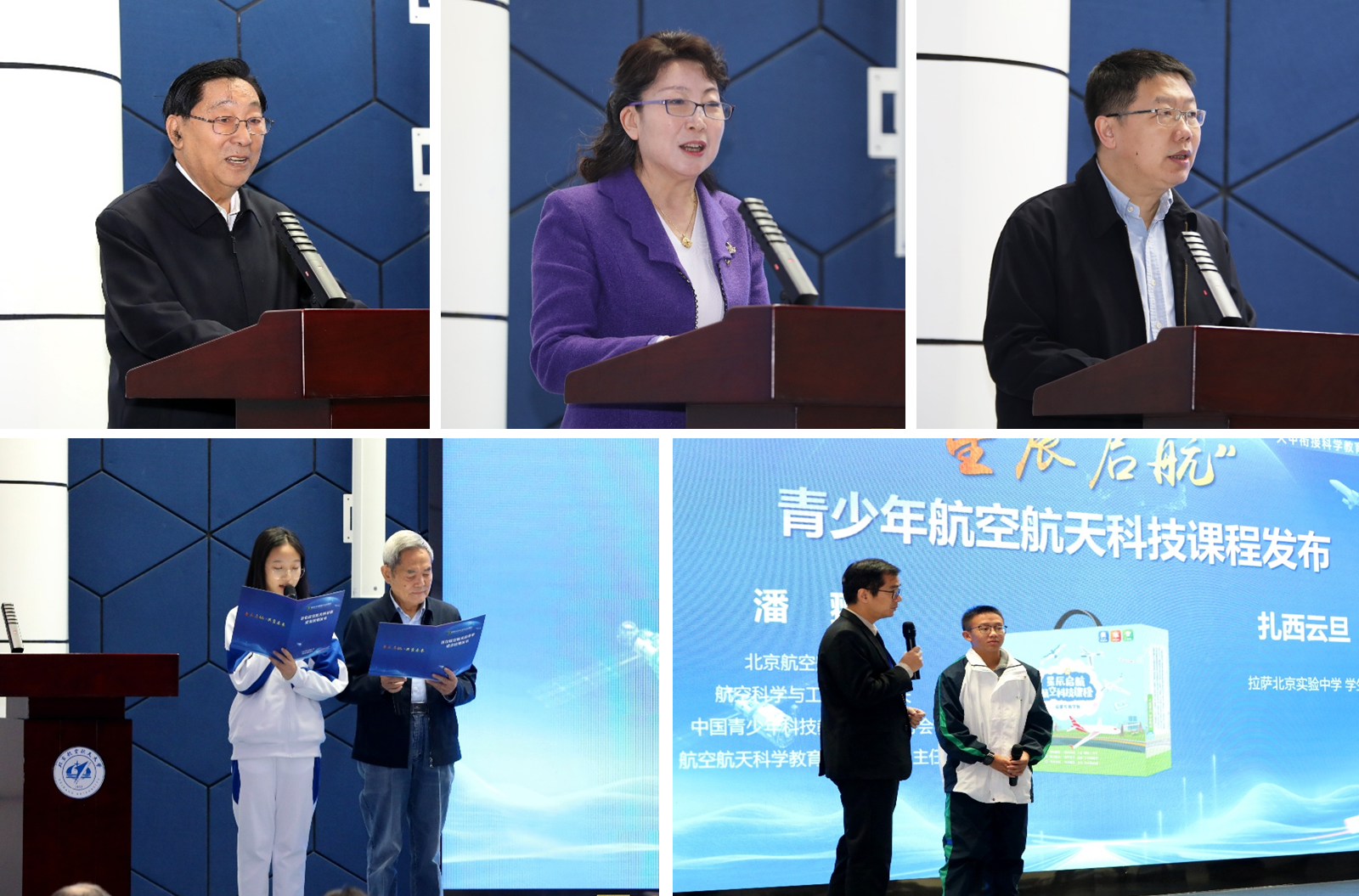 开幕式上,第十二届全国政协副主席齐续春、中国科协青少年科技中心主任辛兵、beats365亚洲版官网副校长吕卫锋分别致辞。中国科学院原党组书记郭传杰院士携手beats365亚洲版官网实验学校学生共同宣读《百位航空航天科学家进百校倡议书》。中国青少年科技教育工作者协会航空航天科学教育专委会主任、北航航空学院院长潘翀教授携手西藏拉萨北京实验中学的学生扎西云丹共同发布“星辰启航”青少年航空航天科技课程。