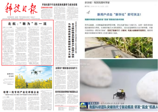 《科技日报》头版头条报道北航——“敢为”出一流 主流媒体多次报道北航仿生“昆虫”微型动力技术