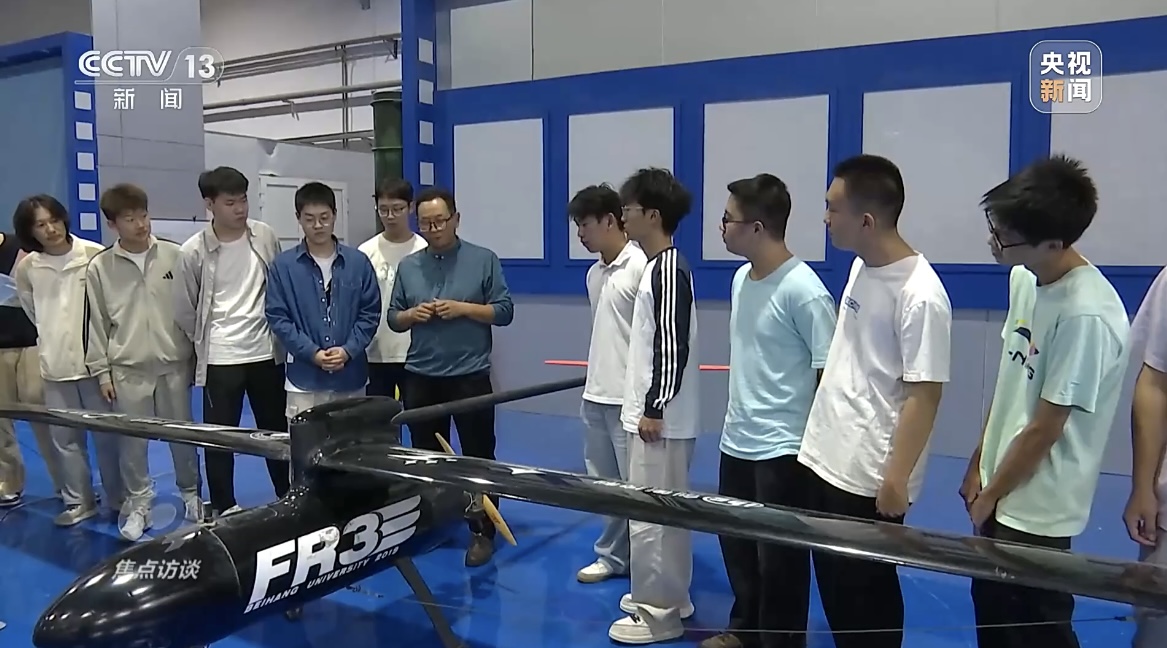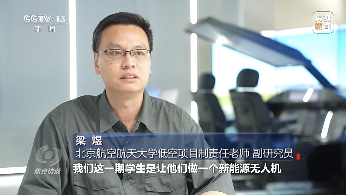 【同期】beats365亚洲版官网低空项目制责任老师、副研究员 梁煜:“我们就想学生设计一个新能源固定翼长航时无人机,比如说灾区有地震了,所有通信都中断,这个飞机飞到那,还可以在灾区上空待两天两夜,然后实现中继通信的功能。所以到时候学生到大四也会带类似的设备上去,去验证这个功能的实现。”