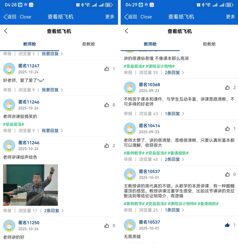 抽象的课堂,因这份“师生同频”变得鲜活。同学们忍不住举起手机,抓拍他手舞足蹈的讲课瞬间,自发做成微信表情包,课间互相转发打趣,还私信王老师:“没有您的同意,拍了您课堂上的照片做了表情包,想发到群里纪念我们一起学习的时光,每次看到都忍不住想笑,真的特别有趣!”另有学生在纸飞机上真诚留言:“您从数学本质讲课,有一种醍醐灌顶的感觉,不拘泥于课本,互动丰富,是不可多得的好老师!”