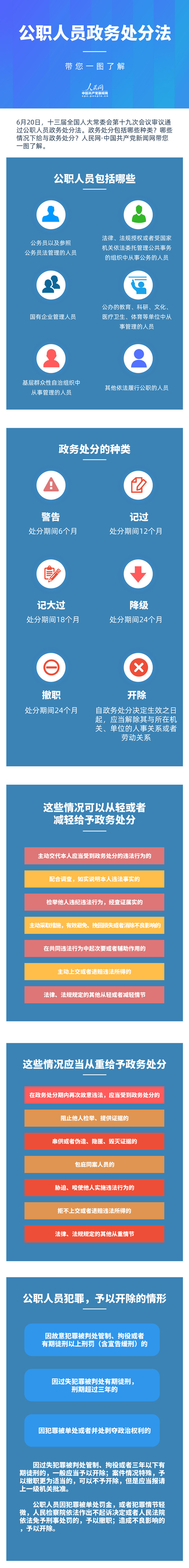 公职人员政务处分有哪些?带您一图了解 2020-06-24 17:19:27继教网站 党建与廉政 来源:人民网-中国共产党新闻网 上一条:图解:加强党建,习近平这些论述要深入领会 下一条:图解:“不忘初心、牢记使命”主题教育总结大会